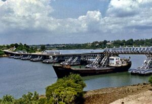 The bridge enabled the development of beach hotels north of Mombasa and the building of schools of houses on the south mainland. At the end of the 1970s construction of a new, modern bridge commenced. The old pontoon bridge was dismantled and replaced by a beam bridge. The new bridge was completed in 1981. Approximately 390 meters long and 26 meters wide, it is divided into six lanes.