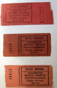 Vehicle tickets to cross the Nyali Bridge. 1/- for cars.1/25 for commercial vehicles.